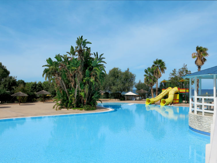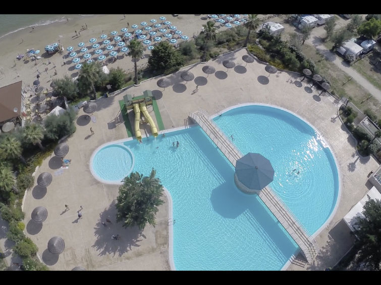 "Happy Relax", 3 pièces mobil home 25 m2. Logement idéal pour 4 adultes + 1 enfant. Aménagement fonctionnel: séjour/salle à manger avec chauffage électrique et air-conditionné. 1 chambre avec 1 grand-lit (140 cm, longueur 190 cm). 1 chambre avec 1 x 2 lits superposés (70 cm, longueur 190 cm), 1 lit gigogne (1 pers. longueur 175 cm). Cuisine ouverte (4 plaques de cuisson). Douche/WC. Air-conditionné (en sus). Terrasse partiellement couverte. Meubles de terrasse, barbecue électrique (portable), chaises longues (2). Place de parking (1 Voiture), garage. Veuillez noter: logement non-fumeur. IT071038B100020490