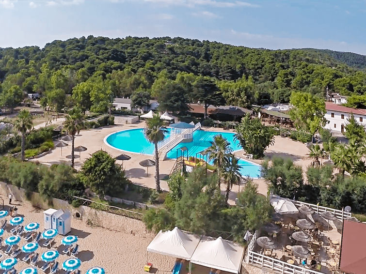 Grand village de vacances accueillant pour les enfants "Internazionale Manacore". À 10 km du centre de Peschici, à 15 km du centre de Vieste, sur un versant, à 500 m de la mer. En commun: terrain 25 ha avec arbres, piscine en forme d'haricot (900 m2, disponibilité saisonnière: 17.Mai. - 04.Oct.). Bassin pour les enfants, tennis (en sus), volley ball, beach volley. Infrastructures de la résidence: réception, restaurant, bar, café, Connexion WIFI, possibilité d'achats, lave-linge (en sus) (en commun). Place de parking. Arrêt de bus 10 km, plage de sable 500 m. Veuillez noter: complexe de vacances sans voiture. Animation en saison. Le propriétaire n'accepte pas les groupes de jeunes. Déchargement et chargement des bagages à la location de vacances. Port du bonnet de bain obligatoire. Service de plage inclus (1 parasol, 1 transat, 1 chaise longue). Parasols et chaises longues à la piscine moyennant des frais.